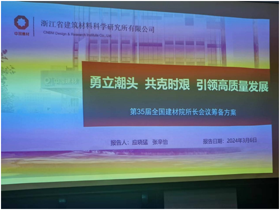 作為全國地方建材科研院(所)長會長單位,河南建材院授權(quán)委托浙江省建筑材料科學(xué)研究所有限公司承辦第三十五屆全國地方建材科研院(所)長會議。浙江省建筑材料科學(xué)研究所有限公司董事長應(yīng)曉猛表示,將全力以赴做好第三十五屆全國地方建材科研院(所)長會議籌備工作,確保會議高質(zhì)量召開,希望以此為契機(jī),進(jìn)一步加強(qiáng)全國各省、自治區(qū)(直轄市)建材科研院所之間的溝通聯(lián)系,互相交流管理經(jīng)驗,充分發(fā)揮各自優(yōu)勢,強(qiáng)化平臺建設(shè),拓展合作領(lǐng)域,實現(xiàn)互利共贏、協(xié)同發(fā)展,為推動建材行業(yè)技術(shù)創(chuàng)新、轉(zhuǎn)型升級作出應(yīng)有貢獻(xiàn)。
